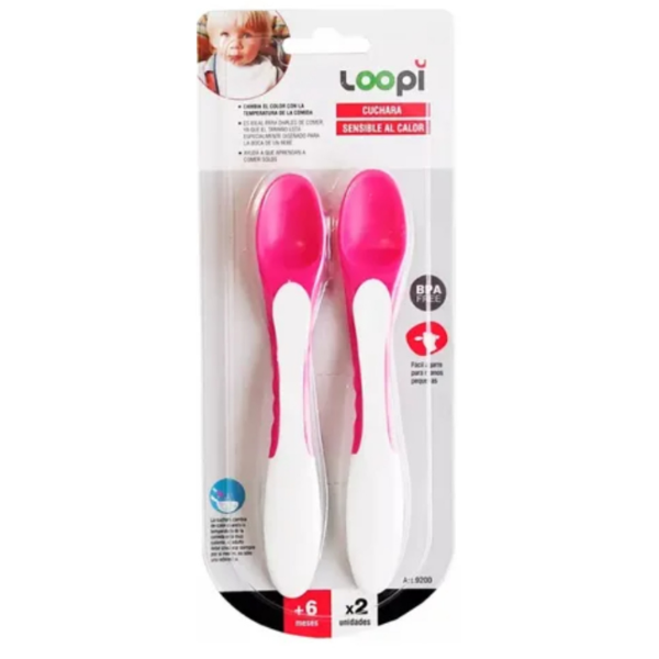 2 cucharas con sensor de temperatura. Cabezal de silicona suave y flexible.