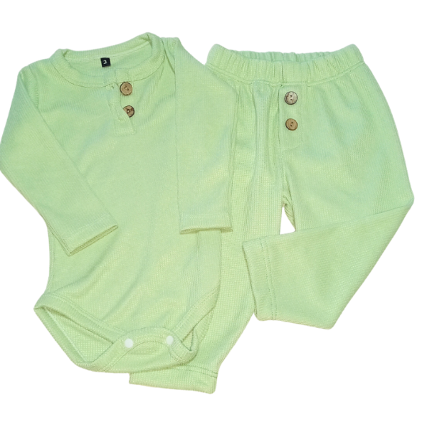 Conjunto de body y pantalón en wafle color verde talle 2